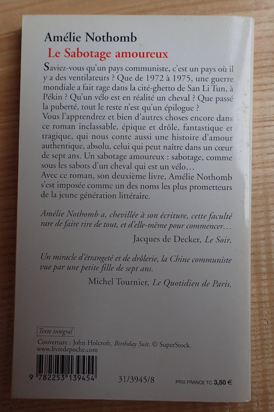 Résumé du roman LE SABOTAGE AMOUREUX d’Amélie Nothomb :